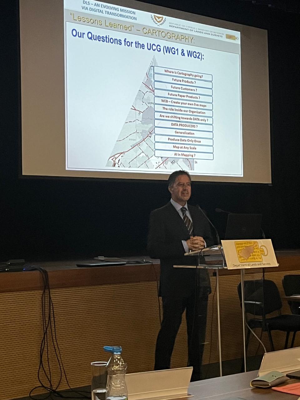 The event took place at the POED building in Nicosia and was attended by 100 delegates from 20 countries, primarily representing national cartographic organizations. Additionally, a team of 11 staff members from Esri participated.